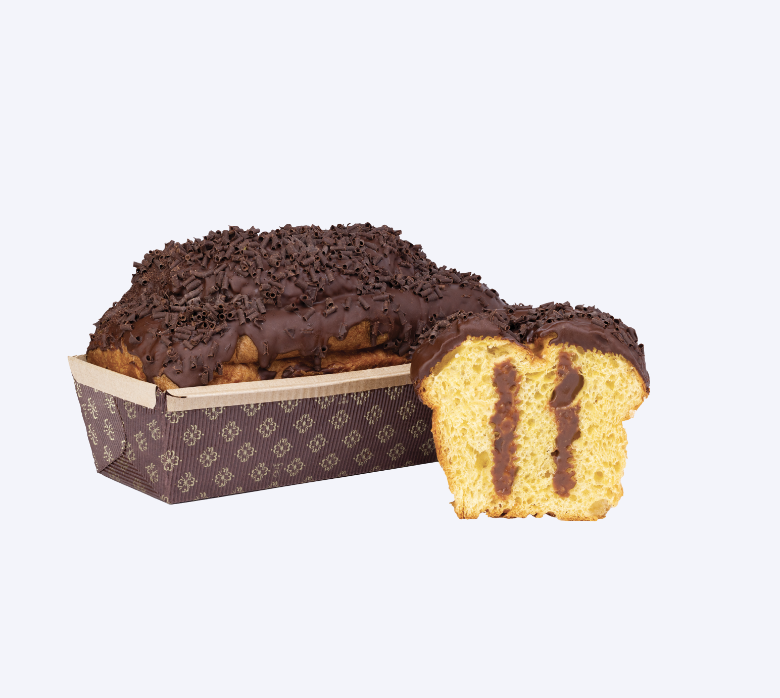 Prodotto dolciario da forno artigianale a lievitazione naturale farcito con crema ganache al cioccolato fondente.